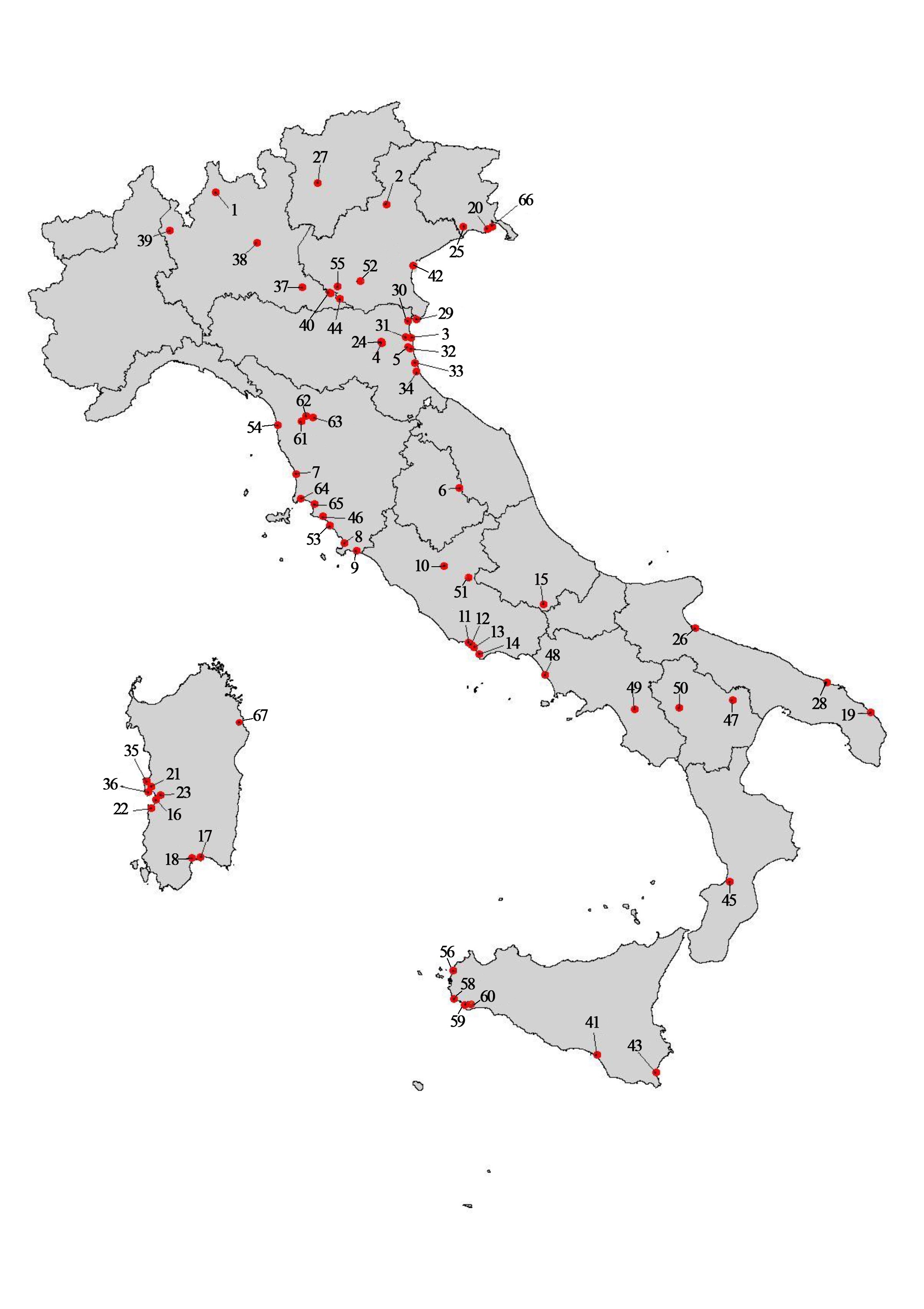 I 66 siti Ramsar italiani istituiti e in istituzione coprono 79.826 ettari, le regioni in cui le aree Ramsar sono più estese e più numerose sono l’Emilia-Romagna, con 10 aree (23.112 ha), la Toscana con 11 aree (19.306 ha) e la Sardegna con 9 aree (13.308 ha), mentre non sono presenti siti in 5 regioni.